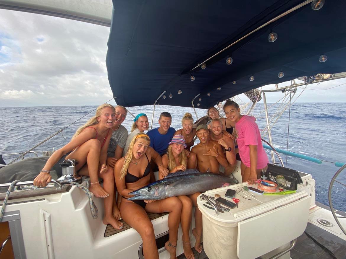 Sidstnævnte gav anledning til en af turens absolutte højdepunkter for os alle – vi fangede nemlig en 167cm Wahoo. Dén brugte vi et par timer på at filetere og hele cockpittet var smurt ind i fiskeskæl bagefter. En 45kg fisk giver åbenbart mad til 3 både med hver sin 12-mands-besætning i 2 døgn. Vi fik bogstaveligt talt fisk til morgen, middag og aften – men jeg kan love dig for, at det blev nydt i fulde drag.